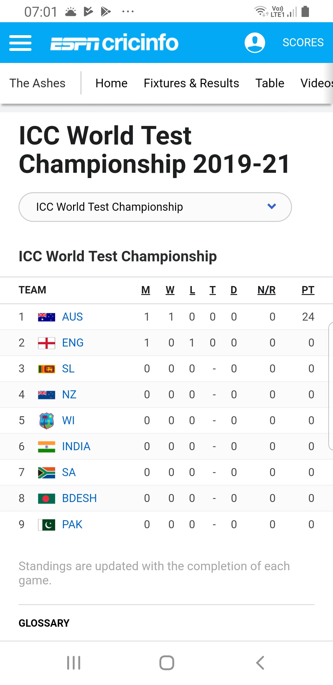 Australia register the first points in the WTC following their impressive victory in the opening Ashes Test in Birmingham over the first five days of August. It should be fascinating to see how the table develops over the next 20 months where 27 series and 71 Tests will be played by nine countries to determine the finalists for June 2021.
